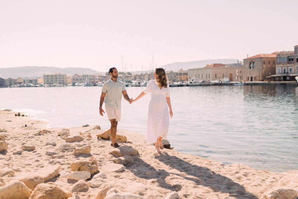 Their maternity photo session took place in the Old Venetian harbor of Chania and the beach on the Akrotiri.